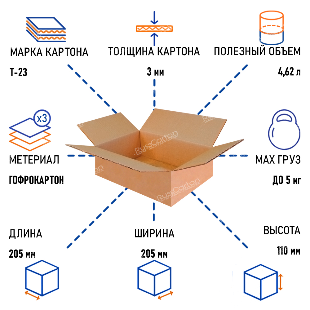 В пустом виде картонный гофрокороб легко и удобно складывается. Выполнен из трехслойного гофрокартона марки Т-23 бурого цвета. Размеры коробок указаны внутренние.