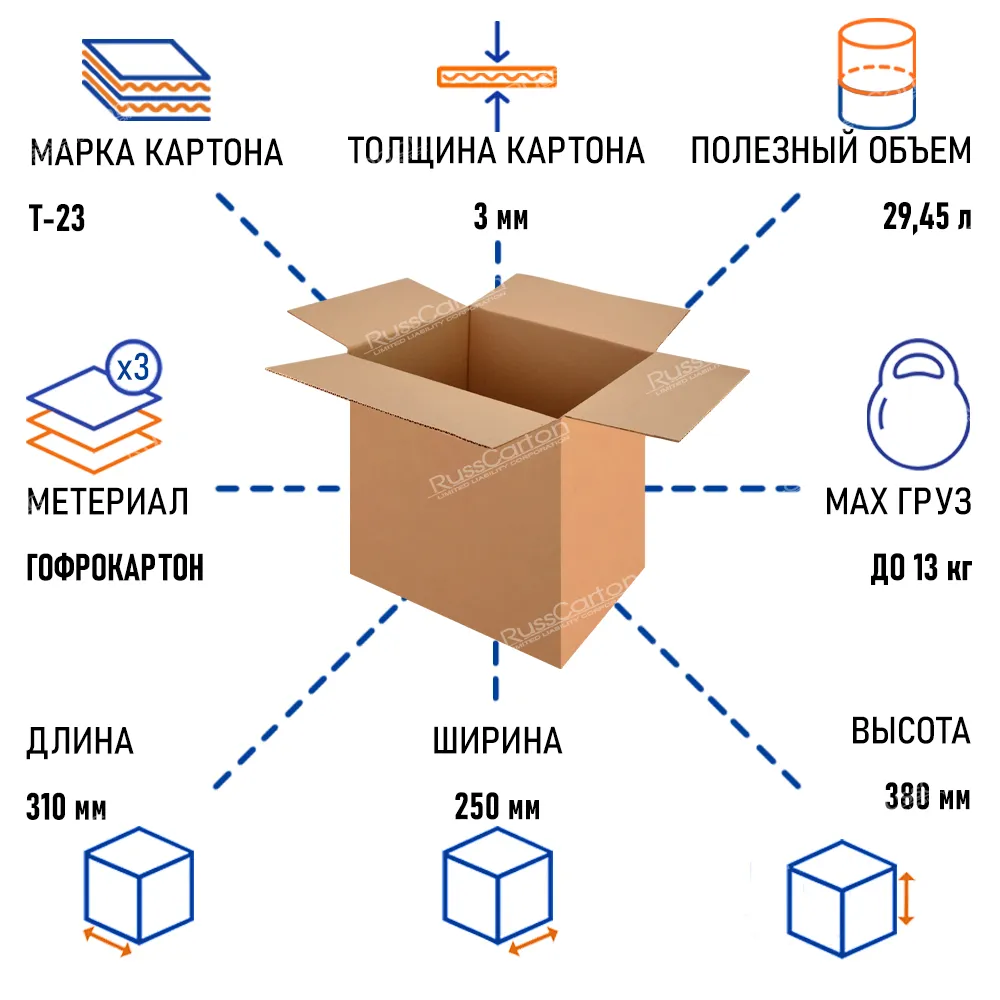 Картонная коробка размером 310х250х380 мм, изготовленная из гофрокартона марки Т-23, отличается прочностью и долговечностью. Бурый цвет придает ей универсальный вид, подходящий для различных задач. Коробка идеально подходит для транспортировки и хранения среднегабаритных товаров, бытовой техники, текстиля и посуды. Конструкция обеспечивает надежную защиту от внешних воздействий, а также удобство в сборке и использовании. Экологичный материал позволяет использовать коробку повторно, что снижает затраты.