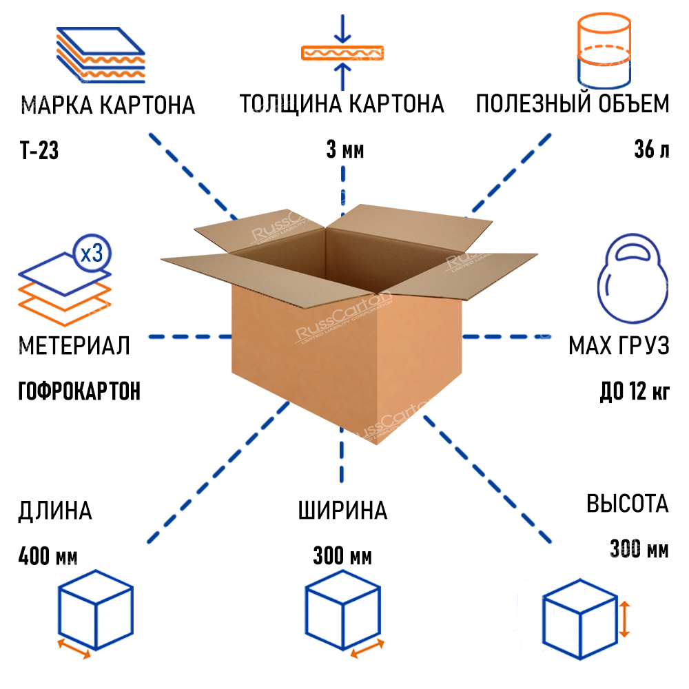 Картонная коробка предназначена для упаковки, транспортировки и хранения различных товаров. Изготовлена из трехслойного гофрокартона Т-23, который обеспечивает надежную защиту содержимого от внешних воздействий и повреждений. Размеры 400х300х300 мм делают коробку универсальной для использования с крупногабаритными или средними грузами. Бурый цвет практичен и подходит для маркировки. Коробка легко складывается, устойчива к нагрузкам, не требует дополнительного крепежа. Подходит для логистики, складского хранения и бытовых нужд. Экологичный материал подлежит переработке.