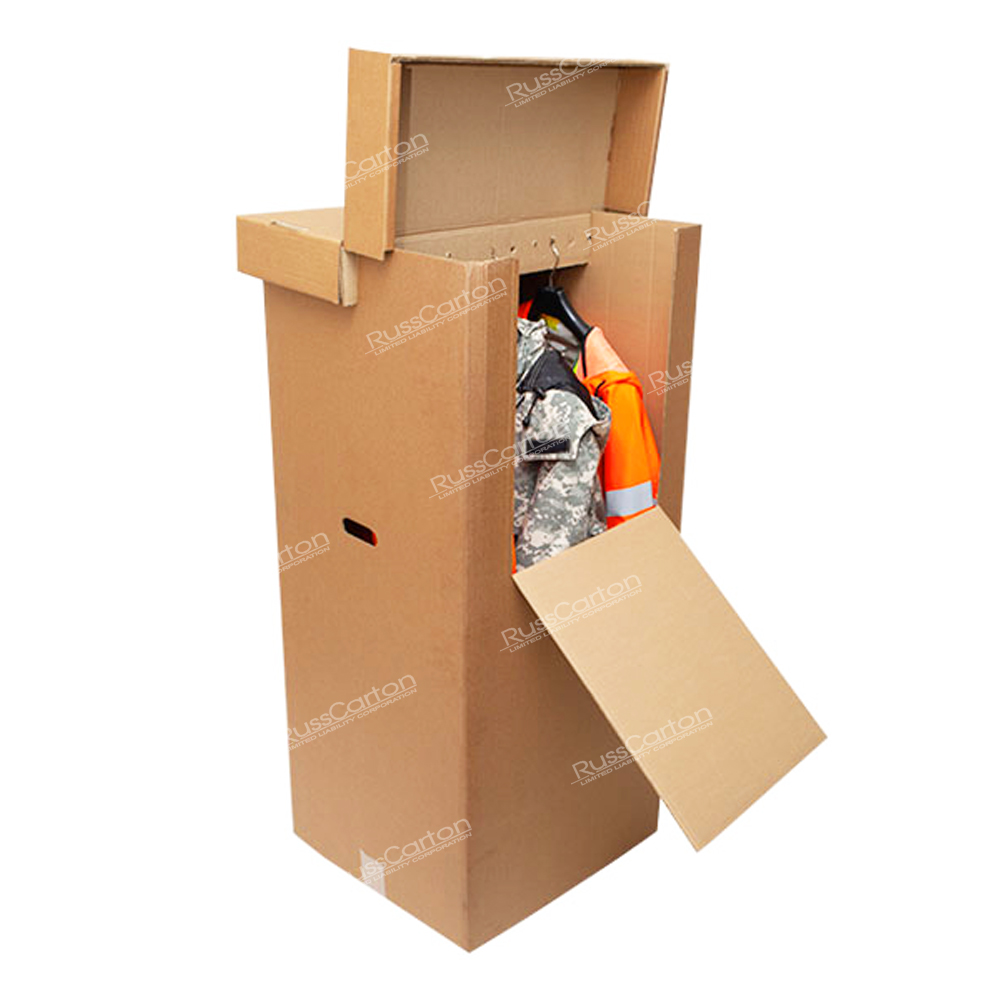 Часто при переезде встает вопрос - как перевезти одежду чтобы она не помялась и не потеряла свой внешний вид. Есть простое и доступное решение - гардеробная коробка-шкаф. Гардеробная коробка изготовлена из пятислойного гофрокартона, имеет большой запас прочности,  предусмотрены ручки.