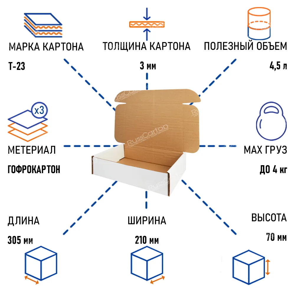 Картонный короб №70 — это надежная упаковка для хранения и транспортировки различных предметов. Его размеры позволяют удобно размещать книги, документы, сувениры и электронику. Изготовлен из прочного гофрокартона марки Т-23, обеспечивает защиту содержимого от повреждений и влаги. Белый внешний и бурый внутренний слой придают эстетичный вид, подходящий для презентаций и почтовых отправлений. Легкий вес и компактность упрощают хранение и перевозку. Удобная сборка без использования скотча экономит время. Идеален для бизнеса и личного использования.