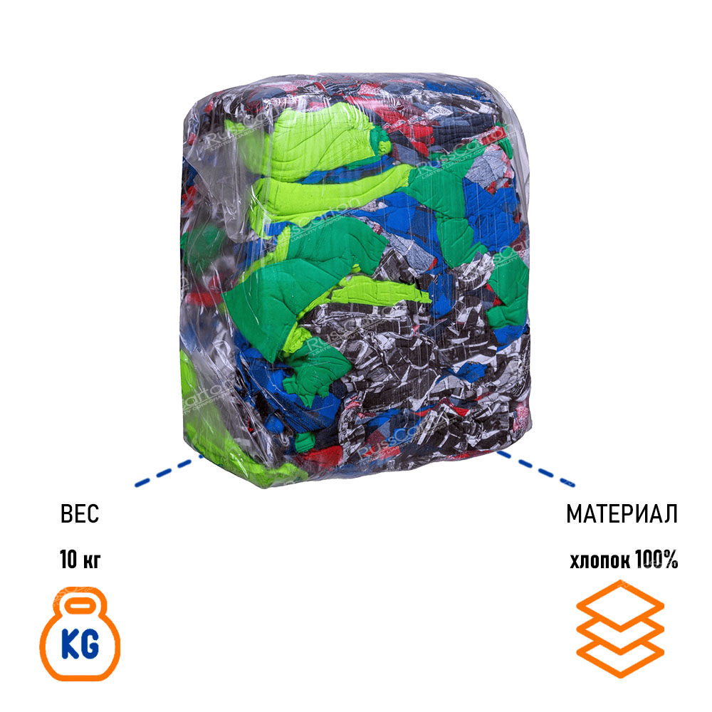 Трикотажная ветошь — это лоскуты чистой хлопчатобумажной ткани для обтирки поверхностей, инструментов и рук при выполнении хозяйственных, ремонтных и производственных работ. Материал из 100% хлопка отличается высокой мягкостью и отличными впитывающими свойствами, благодаря чему эффективно удаляет воду, масло и другие технические жидкости с различных поверхностей. Упаковка весом 10 кг подходит для регулярного использования на складах, в мастерских, автосервисах, производственных цехах и при уборке помещений.