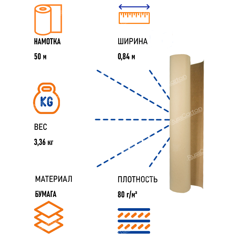 Оберточная бумага как следует из название предназначена для обертывания различных предметов - посуды, кухонных принадлежностей, книг, мебели, посылок и т.д. Также оберточную бумагу используют в качестве наполнителя для обуви и сумок. Оберточную бумагу часто используют при ремонтных работах для защиты напольных покрытий и мебели от воздействия строительных материалов. В рулоне 50 метров бумаги.