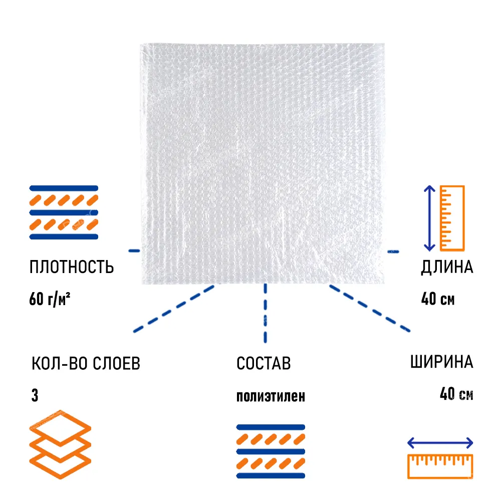 Что делает наш пакет таким особенным? В первую очередь, это его материал – воздушно-пузырчатая пленка. Каждая пузырьковая ячейка защищает от ударов, вибраций и других механических повреждений. Содержимое будут доставлено в идеальном состоянии, независимо от условий перевозки.