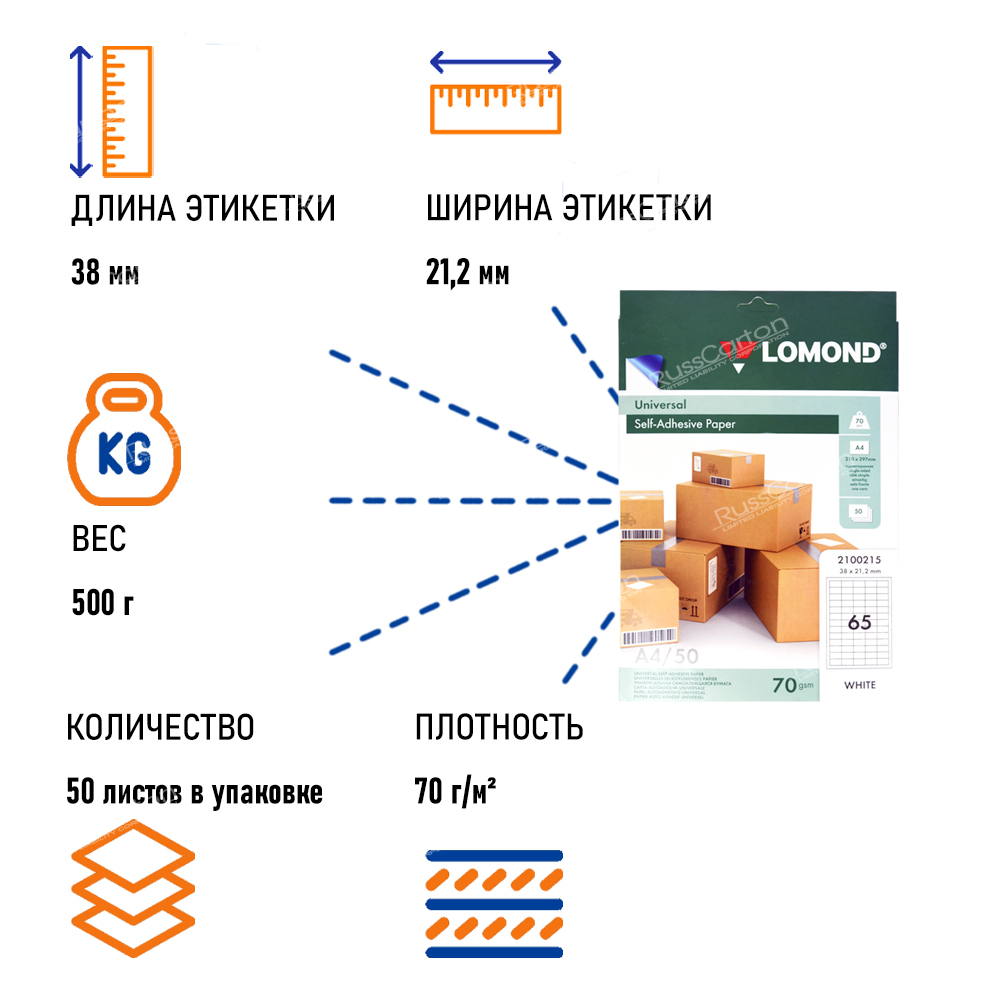 Самоклеящаяся бумага LOMOND белая, А4, 50л, 65 этикеток, 38х21.2 мм