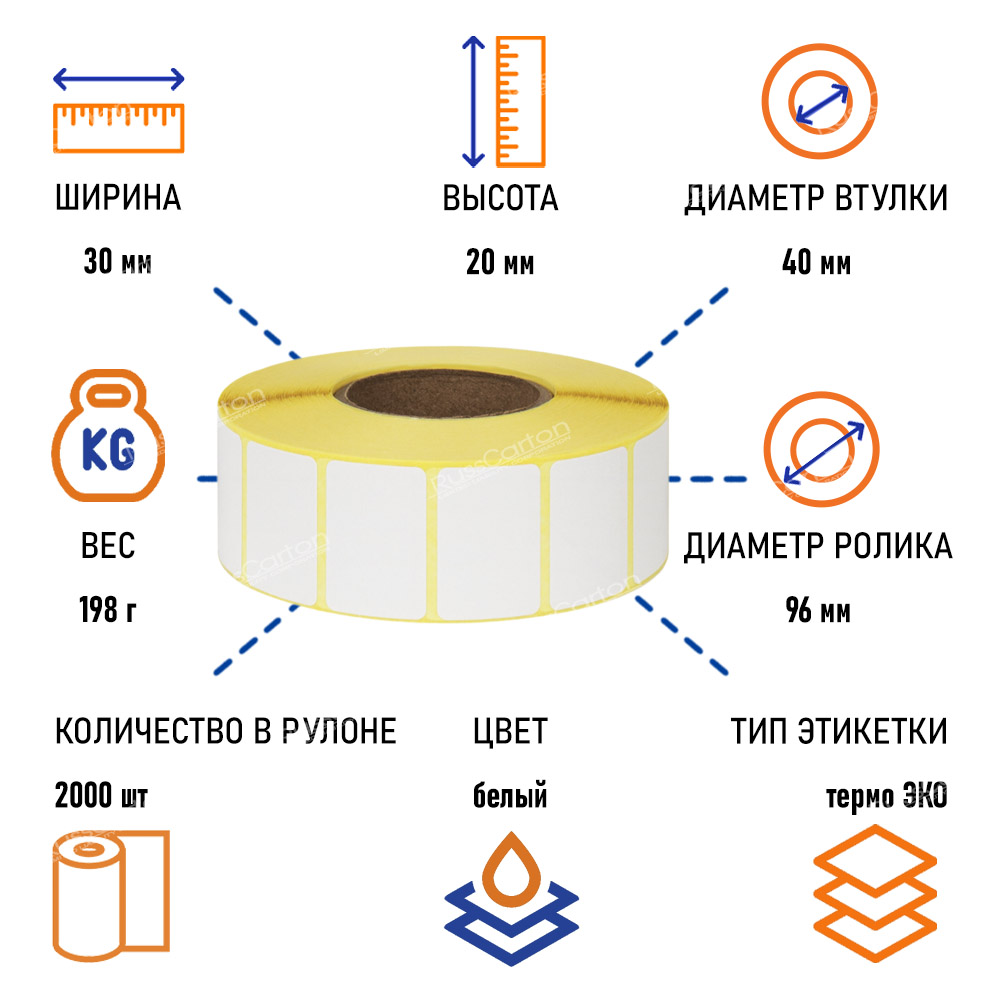 Термоэтикетки самоклеящиеся ТермоЭко 30х20 мм, 2000 этикеток в ролике