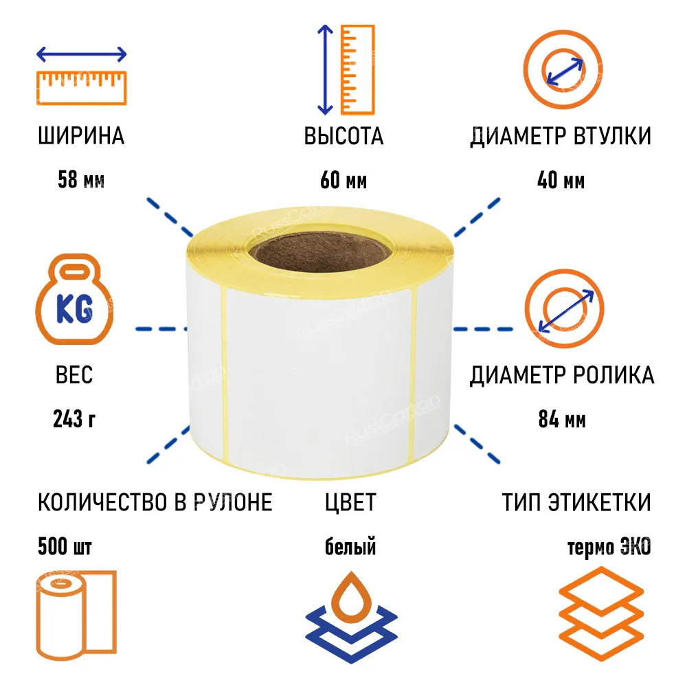 Термоэтикетки самоклеящиеся ТермоЭко 58х60 мм, 500 этикеток в ролике
